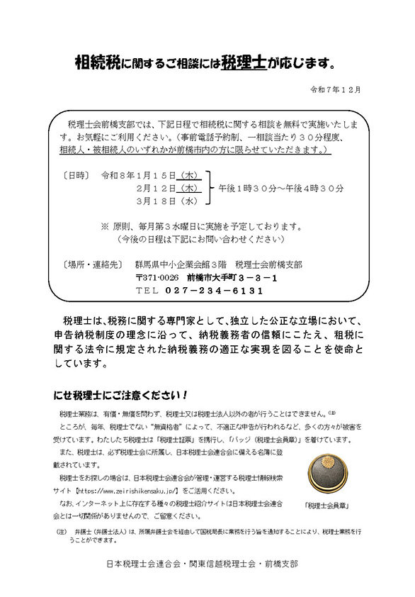 | 2月10日(火) | 13:00〜 | 確定申告説明会 | 商工会議所サクラ | |